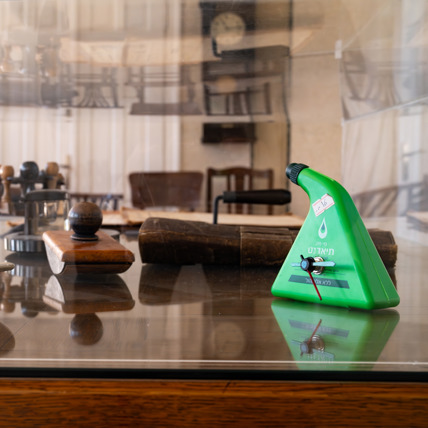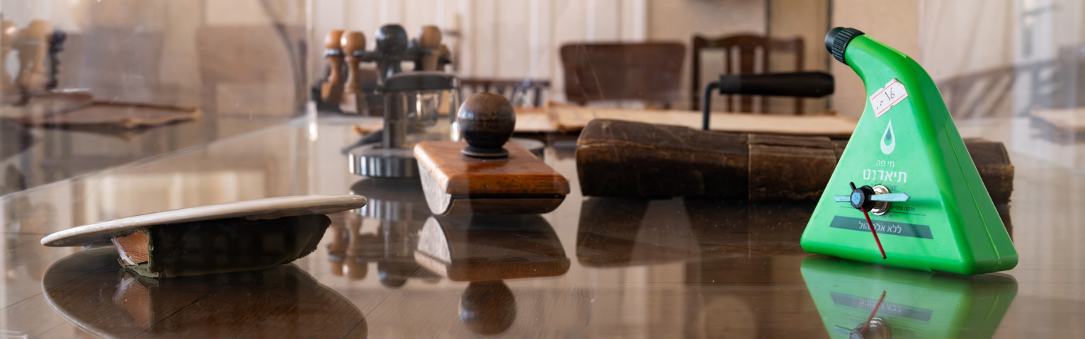 שלמן, שען ותיק ואמן חובב, מפסל שעונים מחפצים וחומרים שונים, ובהם בין היתר מכלי פלסטיק של מוצרי טיפוח. העבודה "6'" היא פרי שיתוף פעולה והסכם החלפה זמני בינו לבין שוורץ, אשר שילבה בשולחנו המקורי של מאיר דיזנגוף, אשר ניצב במשרדו ההיסטורי, שעון שיצר שלמן מבקבוק מי־פה. באחת המגירות של אותו שולחן מוצג חוזה ההחלפה, המציין את מיקומו של חלקה השני של העבודה: הצבה פיסולית של שוורץ בגלריה העליונה של חנות השעונים, חלל ששימש את שלמן עצמו בעבר להכנת שיעורים וכיום עומד ריק. היא עשויה מחלקי חלונות של ארונות התצוגה בחנות, ומדי שעה ושש דקות בוקע מתוכה צליל. המבקרים שייצאו מהמוזיאון בדיוק בשעה עגולה ויפנו בדרכם אל החנות אולי יספיקו לשמוע את הצליל המתעכב.